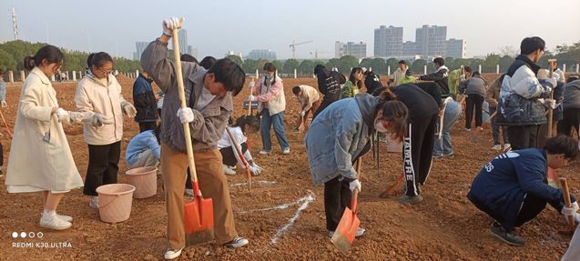 本次活动的主要内容是学习如何处理好种植土壤,为后期植物栽种打造坚实“地基”。同学们认真观看后勤集团绿化中心主任的翻土示范后,开始以饱满的热情投入劳动中去。他们有的拿起铁锹奋力翻土、有的提着胶桶捡石头和误落在田地的垃圾袋,大家分工明确,共同合作,一瞬间辽阔的土地“热腾”了起来。现场师生共同参与劳动,交流耕作经验,分享感受,拉近了彼此间的距离。